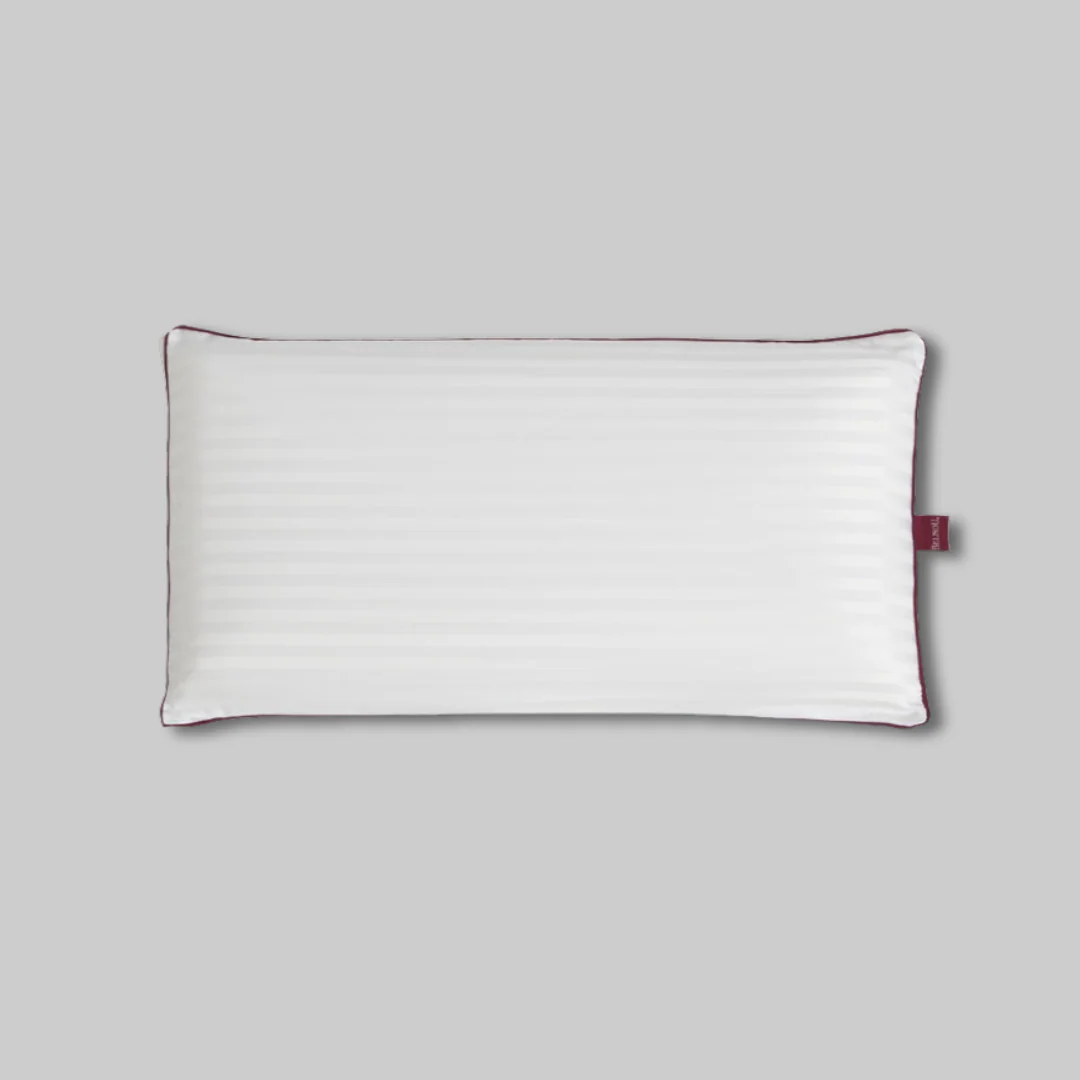 Almohada viscoseda de la marca Belnou, adaptable de tacto seda muy suave, con funda de microfibra en satén y ribetes granates. Funda interior de algodón que protege el núcleo viscoelástico, alta adaptabilidad y firmeza