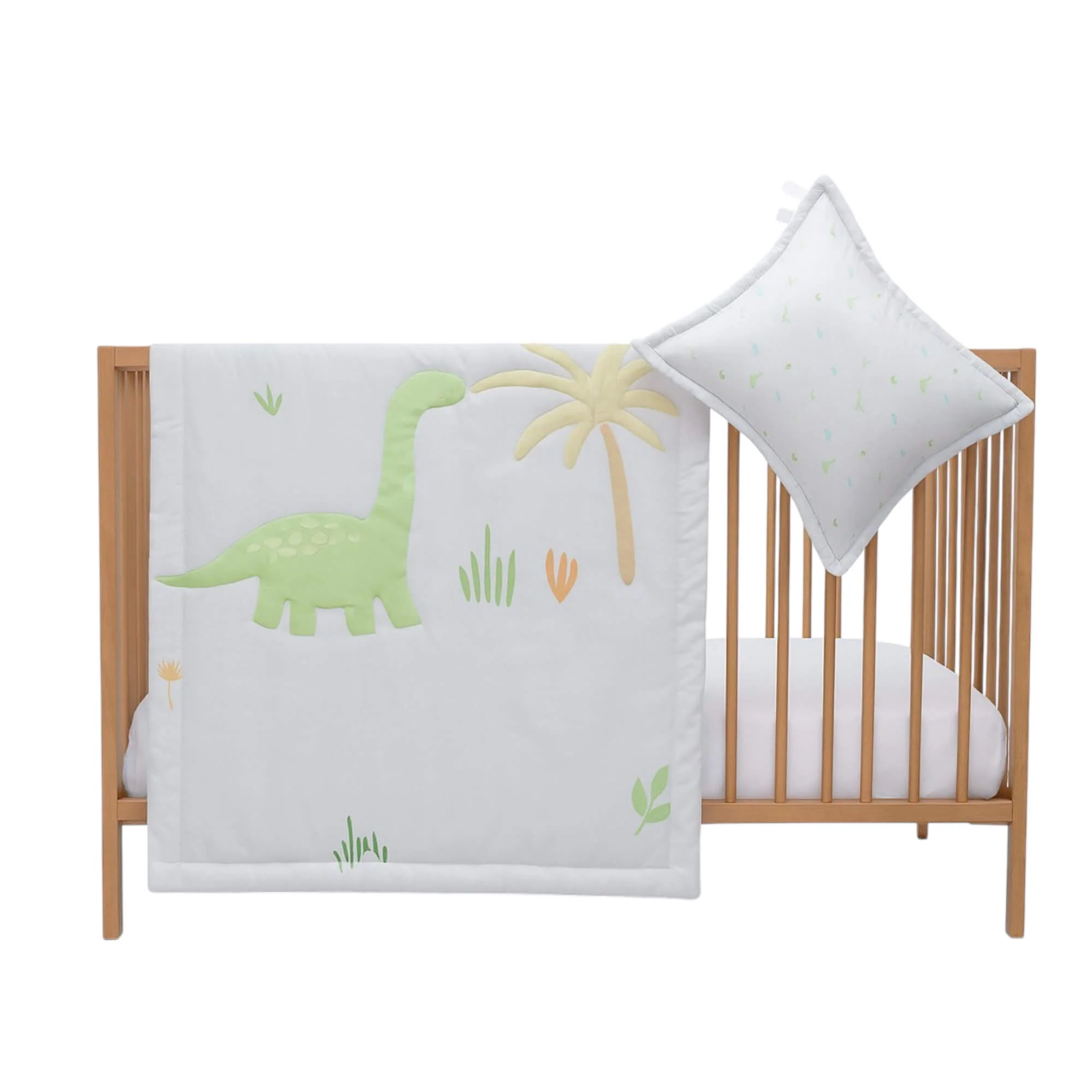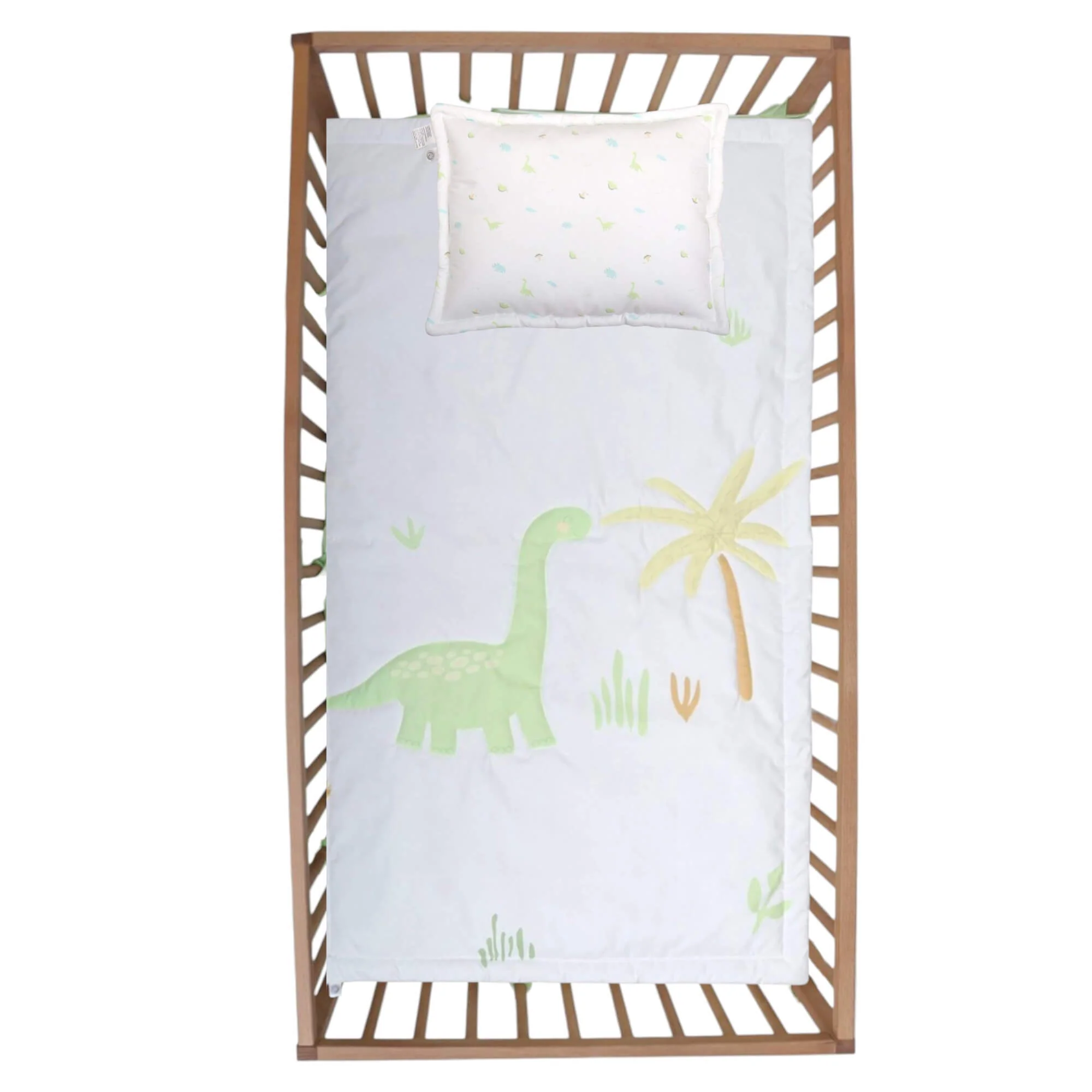 «El Edredón de Cuna Cary Dino Verde Unisex transforma la habitación de tu bebé en un espacio lleno de dulzura y fantasía. Con un encantador diseño de dinosaurio en tonos verdes, este set aporta estilo, ternura y diversión al descanso infantil.