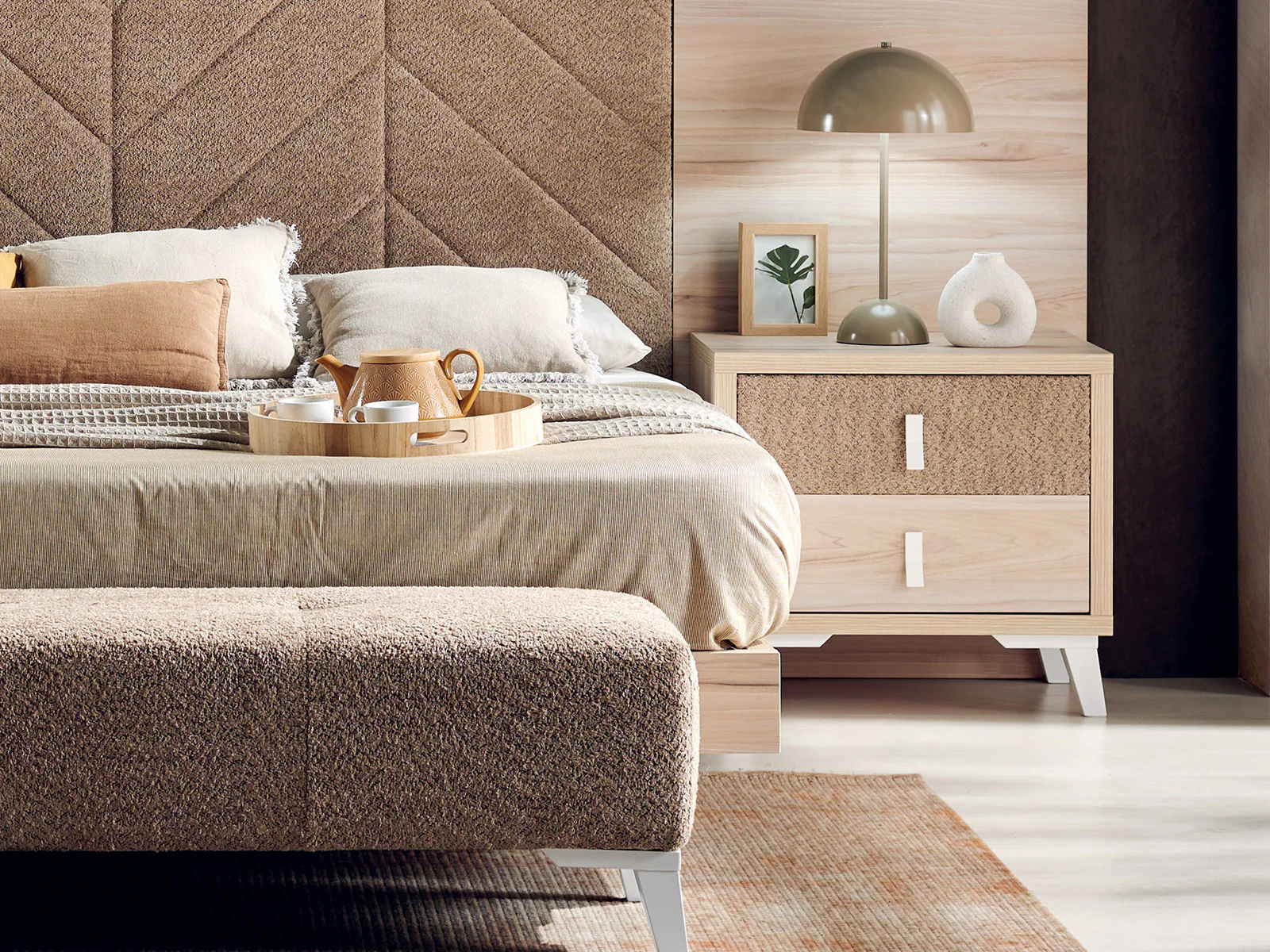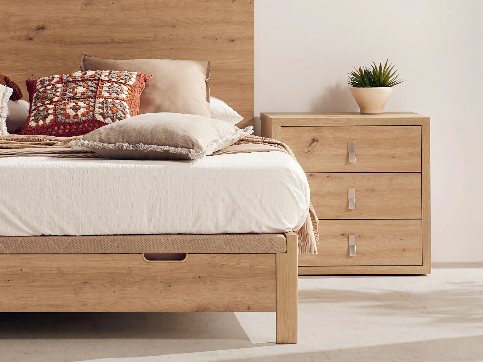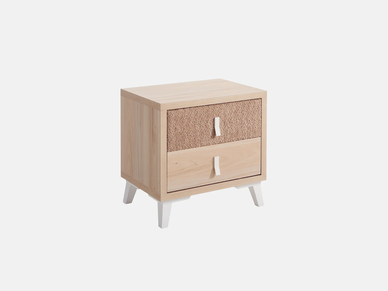 Mesita de estilo industrial con cajones, disponible en 6 colores: blanco nieve, glacial, magnolia, bruma, bellota y estepa.